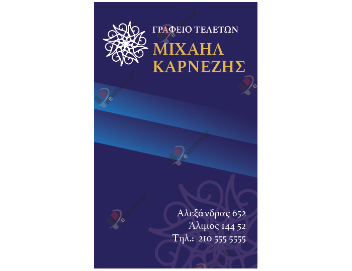 Αναλαμβάνουμε την σχεδίαση της δική σας κάρτας, με τα στοιχεία και το λογότυπο του γραφείου – εταιρείας σας.